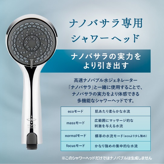 ※多機能シャワーヘッドとしてご使用いただけますが、シャワーヘッドだけではナノバブルは生成しません。ナノバサラ本体と一緒にご使用ください。