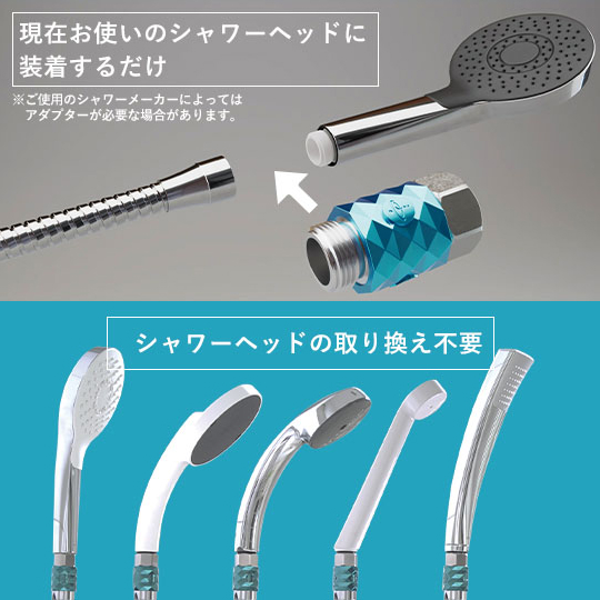 基本的にそのまま取り付けできますが、一部ネジ規格が合わない場合(G1/2 規格以外)は、お使いのシャワーメーカーをご確認の上、付属アダプターをご使用ください。