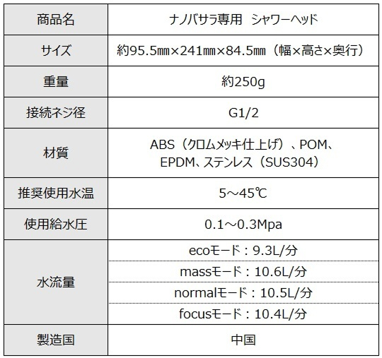 ナノバサラ専用 シャワーヘッド